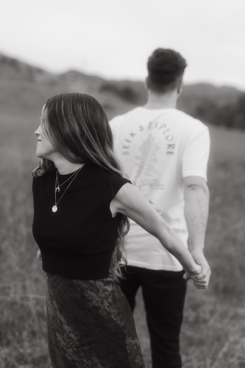 Stepping into Maricela and Ted's love story, we ventured into nature's embrace in Silverado Canyon, CA for their engagement session. Nature had bestowed upon us several days of rain, transforming the landscape into a lush backdrop of greenery. The landscape provided the perfect backdrop for this couple's love story, infusing it with an ethereal and moody ambiance.