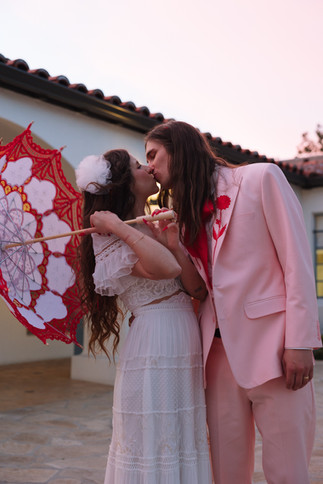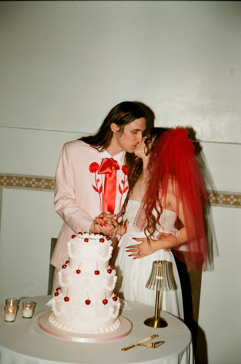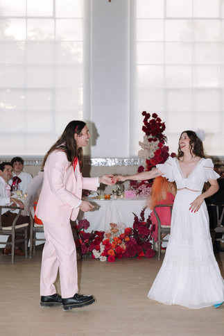 The wedding party's attire was a cool blend of tradition and individuality. The groom, dressed in a pastel pink suit with red accents, paired perfectly with the bride's romantic look. The couple's choice of attire reflected their playful yet classy style, set the vibe for the day.