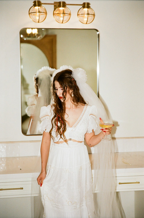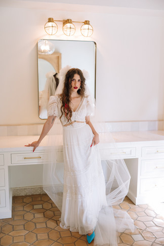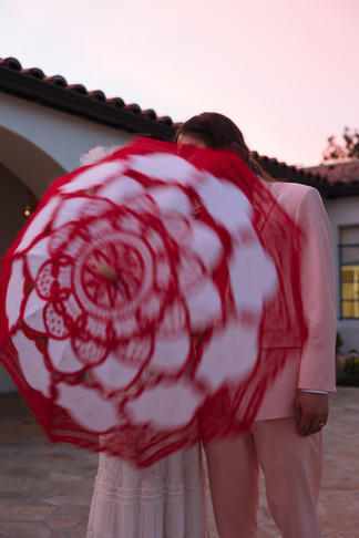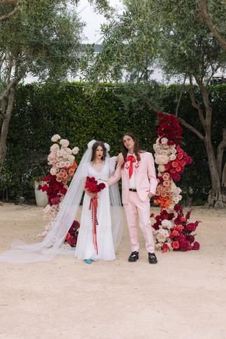 The ceremony took place under olive trees in the back courtyard with the sun cascading above. The blend of natural elements and their modern, colorful aesthetic created images that were both timeless and contemporary.